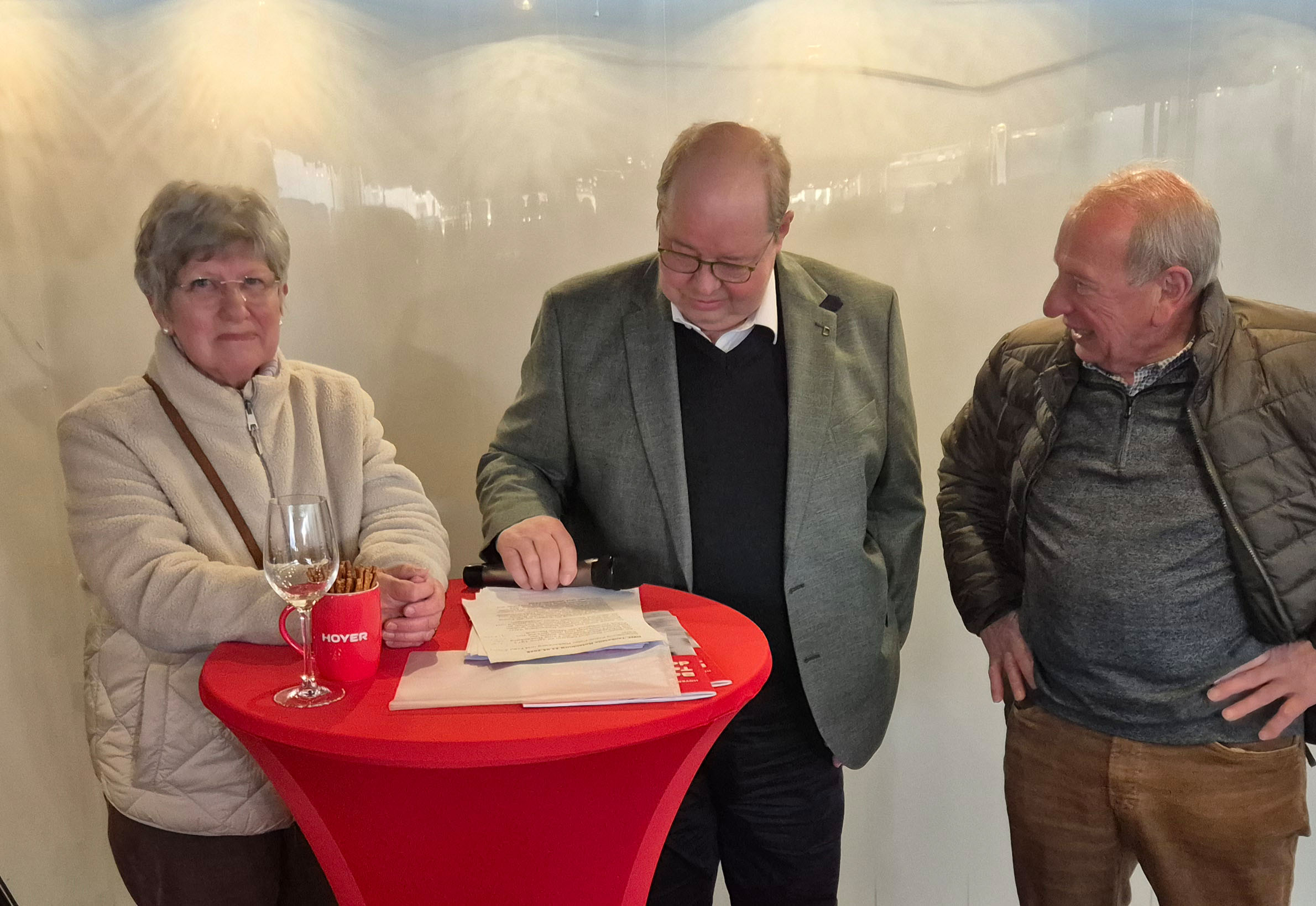 Die örtlichen Gewerbetreibenden verlegten einen ihrer regelmäßigen K-Treffs kurzerhand auf die Tankstelle, als Heinz-Wilhelm Hoyer das Wirtschaftsforum einlud, die Station einmal live in Augenschein zu nehmen. Über 50 Jahre hatte die Familie Riekenberg die Station geführt und durch einen ganz besonderen Service fest etabliert. 2025 beschlossen Karin und Klaus Riekenberg, den verdienten Ruhestand tatsächlich Wirklichkeit werden zu lassen. Sie übergaben den Betrieb an Hoyer und waren damit sicher: Unsere Kunden werden weiterhin wie gewohnt gut betreut. Heinz-Wilhelm Hoyer bedankte sich in seiner Begrüßung an die RWF-Mitglieder bei dem befreundeten Ehepaar Riekenberg für das große Vertrauen und versprach, den gelebten Service beizubehalten. Ansonsten hat sich auf dem Gelände inzwischen einiges getan, denn die Tankstelle wurde komplett ins Hoyer Design umgeflaggt und der Shop-Bereich wurde komplett erneuert.